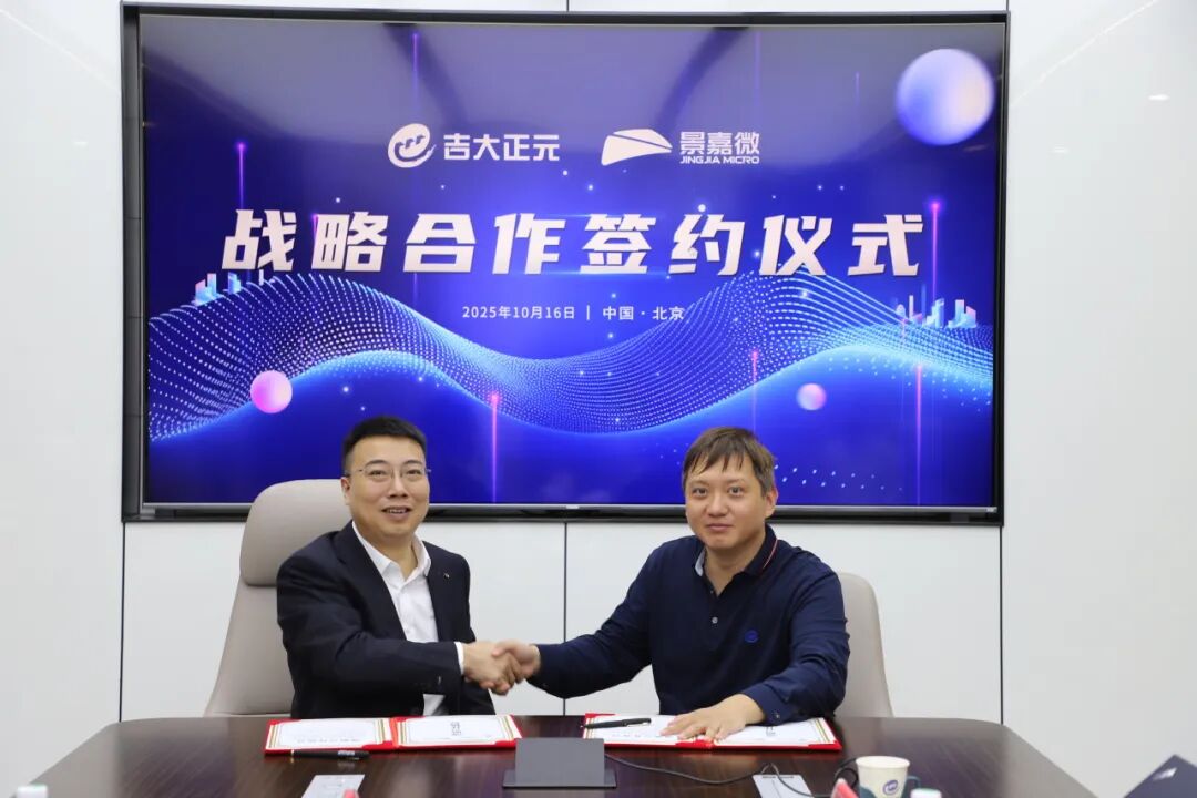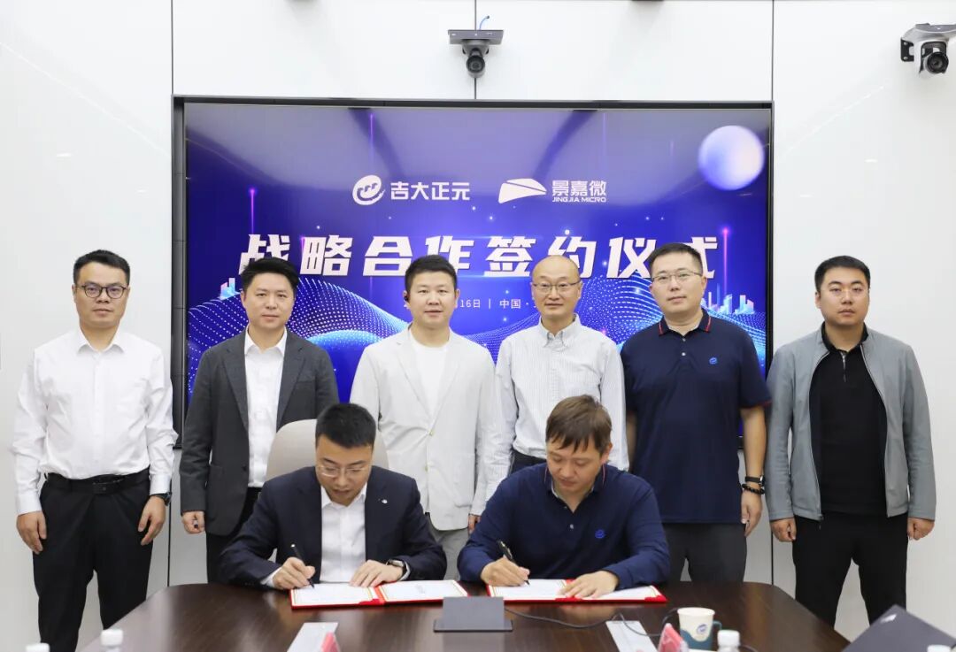 10月16日上午,长沙景嘉微电子股份有限公司(以下简称“景嘉微”)与长春吉大正元信息技术股份有限公司(以下简称“吉大正元”)正式签署战略合作协议。景嘉微副总裁兼董事会秘书周振武,副总经理兼芯片事业部总经理黄剑,芯片事业部营销总经理刘世杰,芯片事业部生态总监朱光,吉大正元集团董事兼副总裁田景成,政法行业负责人兼渠道部副总经理金鑫磊,产业装备中心CTO兼信安公司常务副总经理王旭东,信创事业部渠道总监冷朋飞,生态发展部总监柯友运等双方代表共同出席签约仪式。