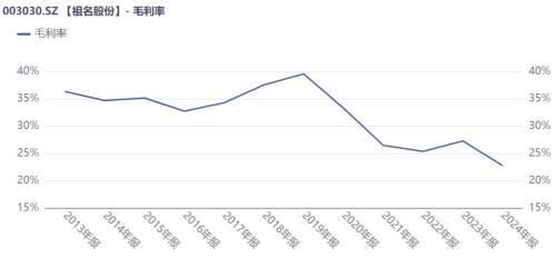 更令人担忧的是,祖名股份的省外扩张战略未能实现预期的规模效应,反而因刚性成本上升严重侵蚀了利润空间。2020年至今,公司毛利率呈现断崖式下滑,从2019年39.53%的高位跌至2024年的22.74%,其中省外业务毛利率在2024年单年就下滑超过10个百分点,反映出跨区域扩张战略带来的规模不经济。