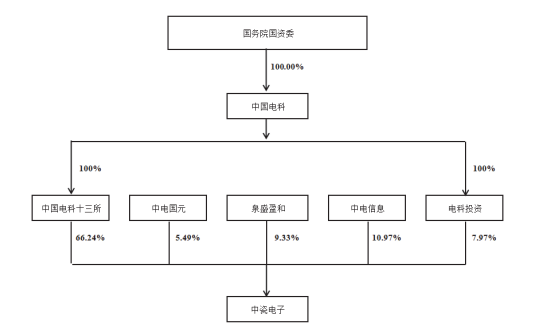本次发行前,中国电科十三所持有公司66.24%的股份,系中瓷电子的控股股东,中国电科通过中国电科十三所、电科投资和中电国元间接控制公司79.69%的股份,系中瓷电子的实际控制人。
