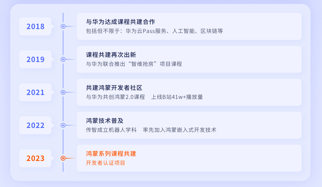 据了解,传智教育与华为的合作由来已久,成果显著。自2018年起,双方就开始在课程共建方面进行合作,内容涵盖了华为云Pass服务、人工智能、区块链等多种技术。