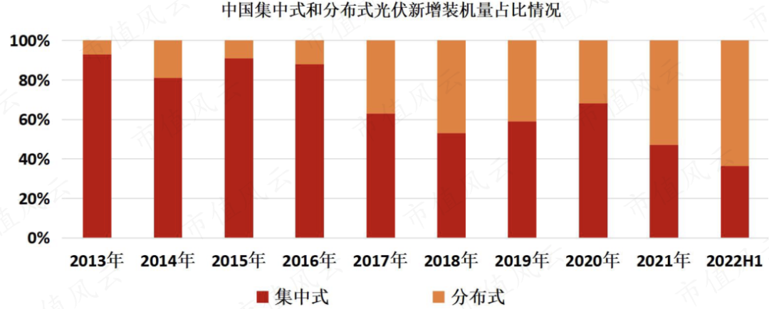 另一方面,分布式光伏正在逐步与集中式并举发展,2021年新增装机量二者基本持平,2022年上半年得以反超。