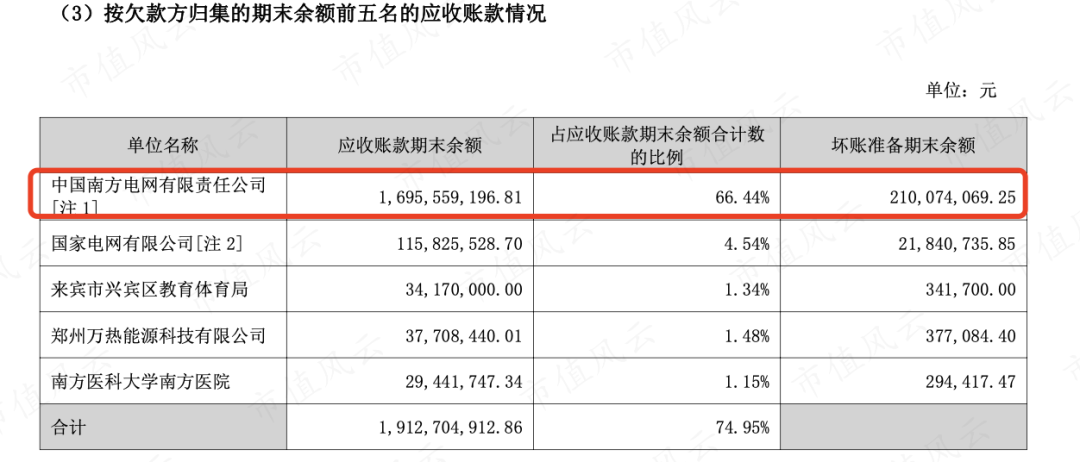 关联交易占比高自然形成了很高的应收帐款,2022年上半年末对南方电网的应收帐款期末余额高达16.9亿,2021年末为13.4亿,占期末总余额的63.8%,占总资产的10%,占比很高。
