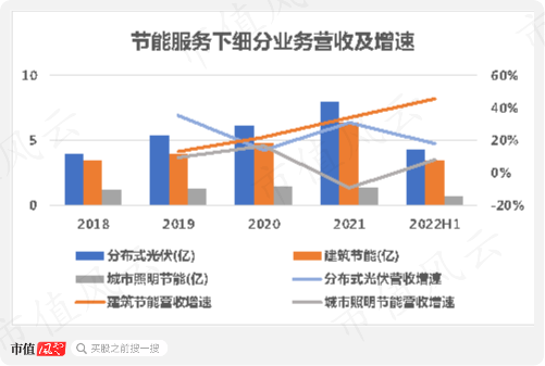 2021年建筑节能业务为公司创收6.3亿,2022年上半年为3.4亿,同比增速高达45.6%。近几年该业务年平均增长率为22%,实现稳定增长,但占总营收的比重在下滑。