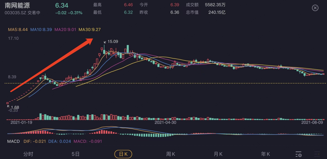 随后股价持续回落,截至2022年9月1日收盘,为6.32元/股,较最高点时已跌去近60%,市场态度冷却。