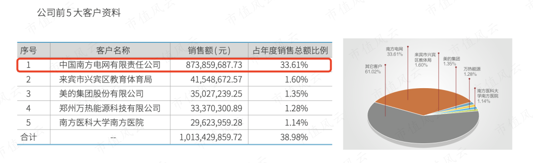 近几年公司第一大客户均为南方电网,2021年公司向其销售8.7亿,占总销售额的33.6%。此外,美的集团、南网医科大学医院等也榜上有名。