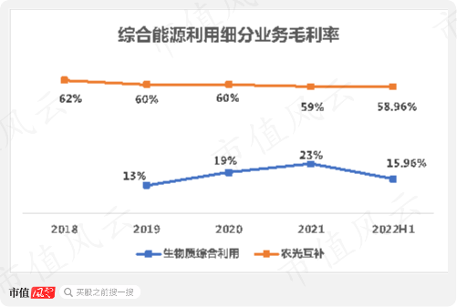 毛利率方面,生物质综合利用业务2022年上半年仅为15.9%,是公司几大业务里最低的,而农光互补项目毛利较高。