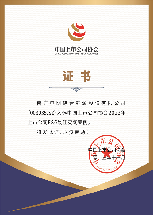 11月16日,由中国上市公司协会主办的中国上市公司可持续发展大会在北京成功举行,大会发布了年度“上市公司ESG最佳实践案例”,南网能源公司《赋能用户高效降碳,争当绿色低碳发展领跑者》成功入选“上市公司ESG最佳实践案例。