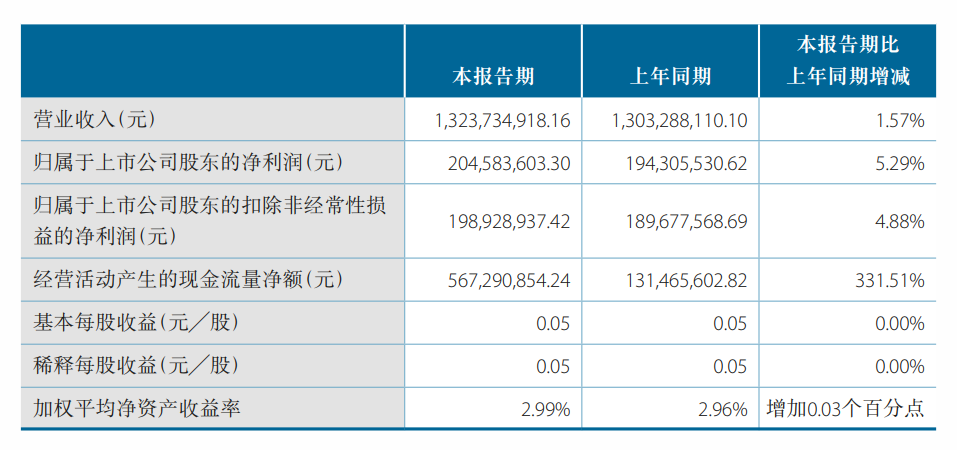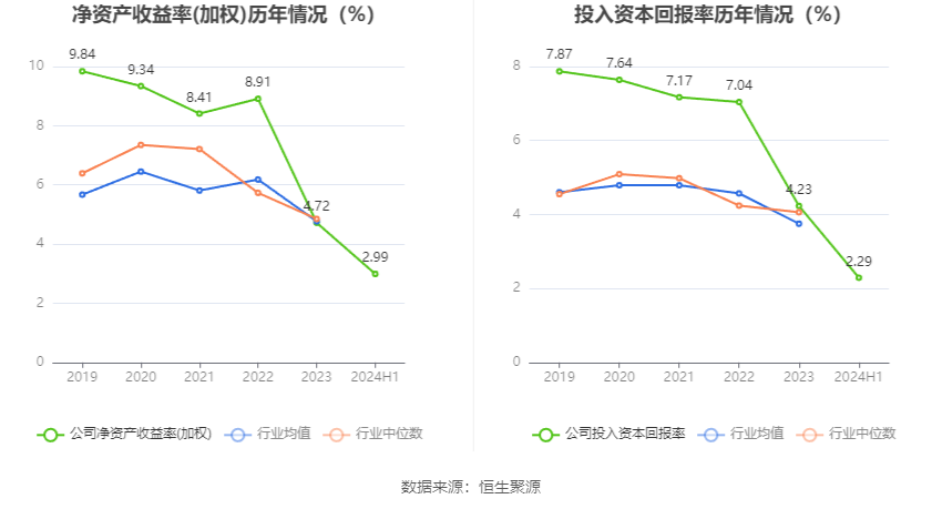 数据显示,2024年上半年公司加权平均净资产收益率为2.99%,较上年同期增长0.03个百分点;公司2024年上半年投入资本回报率为2.29%,较上年同期下降0.19个百分点。