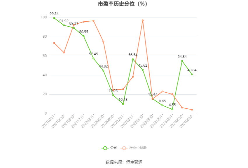 市盈率为负时,不显示当期分位数,会导致折线图中断。