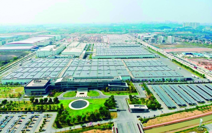 走进南网能源与广汽埃安合作的项目,从高处俯瞰广汽埃安的总装车间,整齐划一的太阳能光伏板覆盖在车间的屋顶上,形成了一片壮观的太阳能城市景观。光伏板在阳光下高效地转换着太阳能,为工厂输送绿色电力。