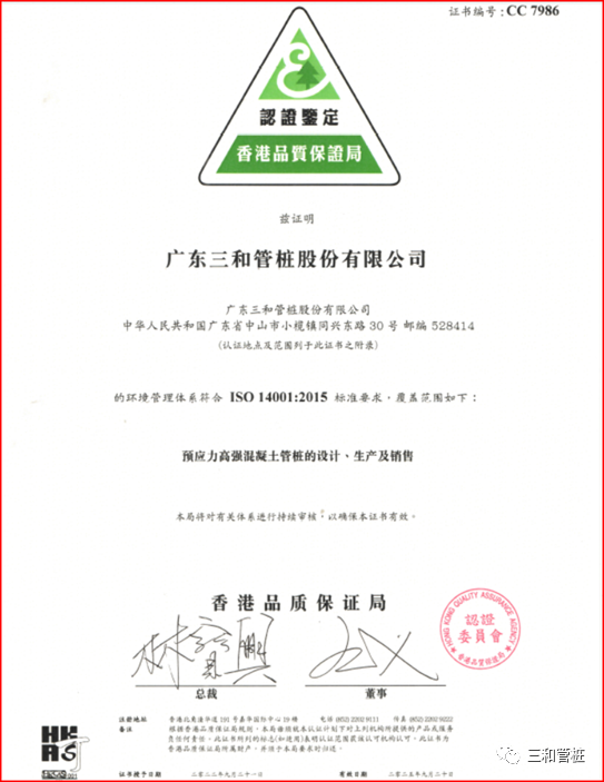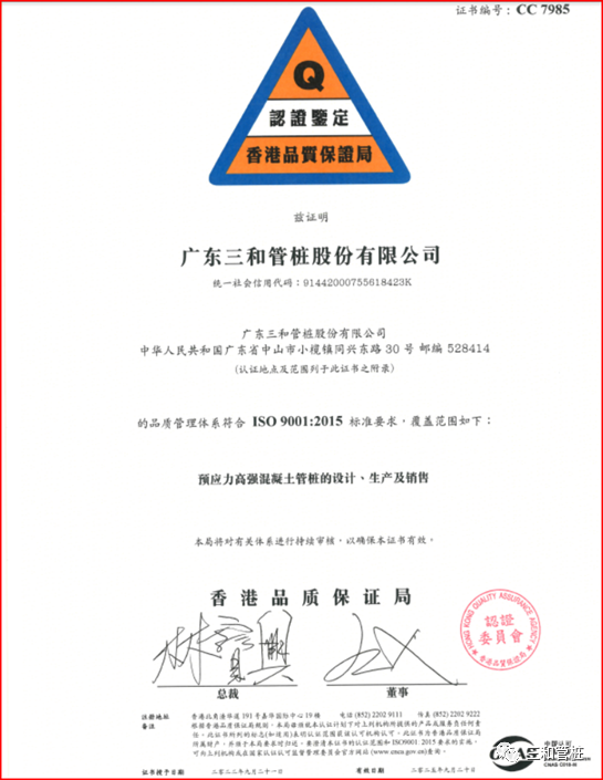 务实勇担当和合共赢”的企业精神和“以人为本,德法施治,自我管理,激励卓越”的管理理念,“让世界上更多的人能享受到三和管桩的安全与实惠”!