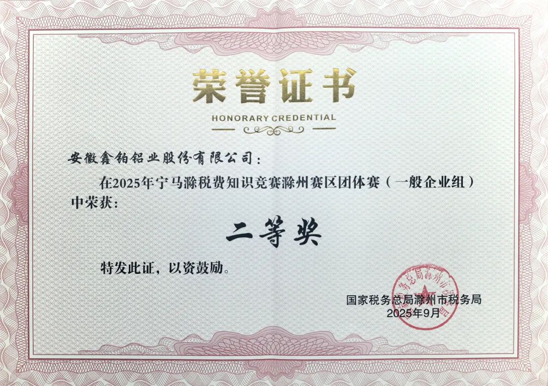 金秋十月,硕果累累,鑫铂股份也收获了一份来自专业赛场的硕果——在“宁马滁税费知识竞赛预选赛(滁州赛区)”中,鑫铂股份财务经理陈政东凭借优异成绩勇夺“个人赛一等奖”,同时鑫铂代表队也依靠扎实的专业功底和出色的团队协作,在众多参赛队伍中脱颖而出,荣获“团体赛(一般企业组)二等奖”,双双为公司赢得荣誉,集中展现了鑫铂股份整体财务管理水平和团队精神风貌。