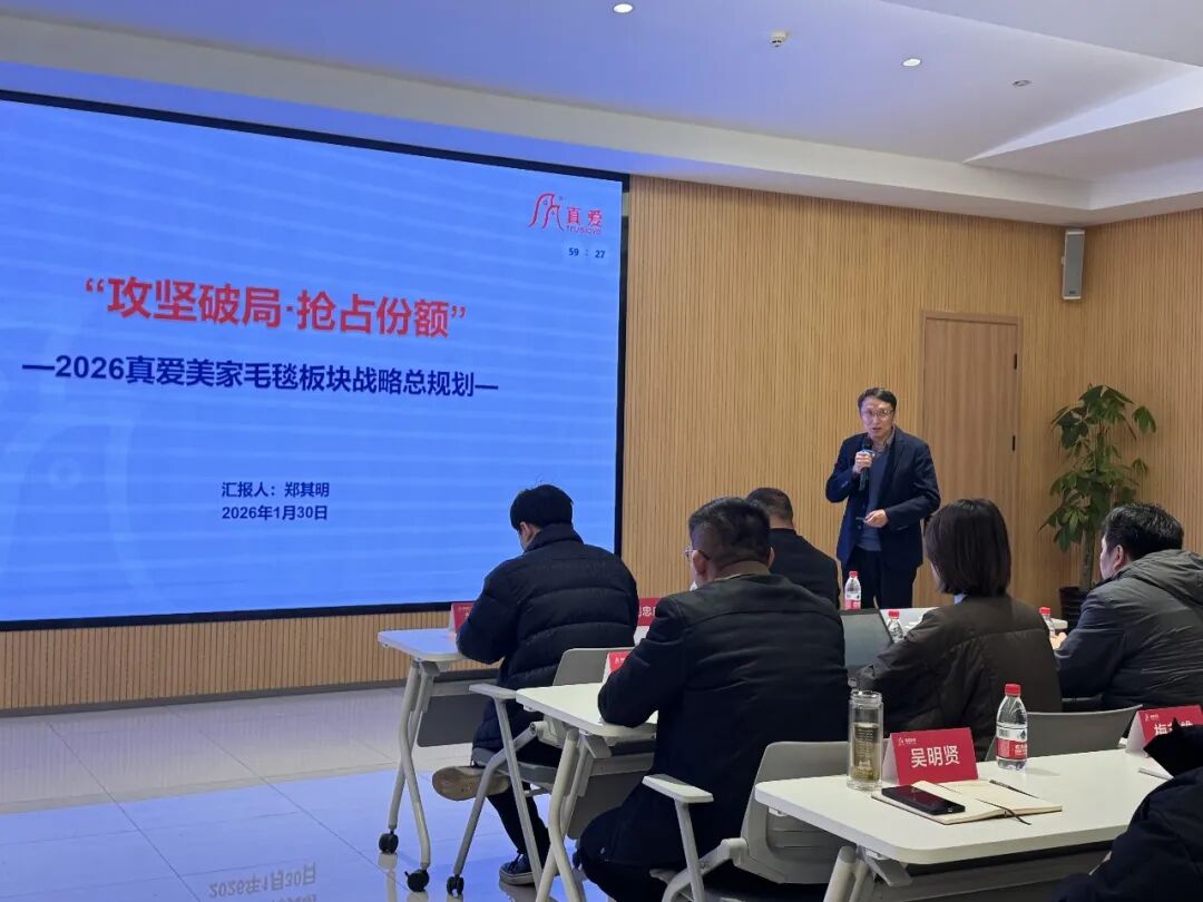 金蛇辞旧启新序,骏马奔腾赴新程。当市场竞争日趋激烈,当发展机遇与挑战并存,唯有锚定方向、凝心聚力,方能攻坚破局;唯有实干笃行、奋勇争先,方能抢占先机。1月30日,“攻坚破局·抢占份额”真爱美家股份有限公司2026年度战略会议隆重召开,真爱集团总裁郑扬、真爱美家股份有限公司总经理郑其明,副总经理刘立伟、陈世平及全体同仁齐聚一堂,共绘发展蓝图,共商攻坚之策,共启奋进新程,为2026年高质量发展吹响冲锋号角。