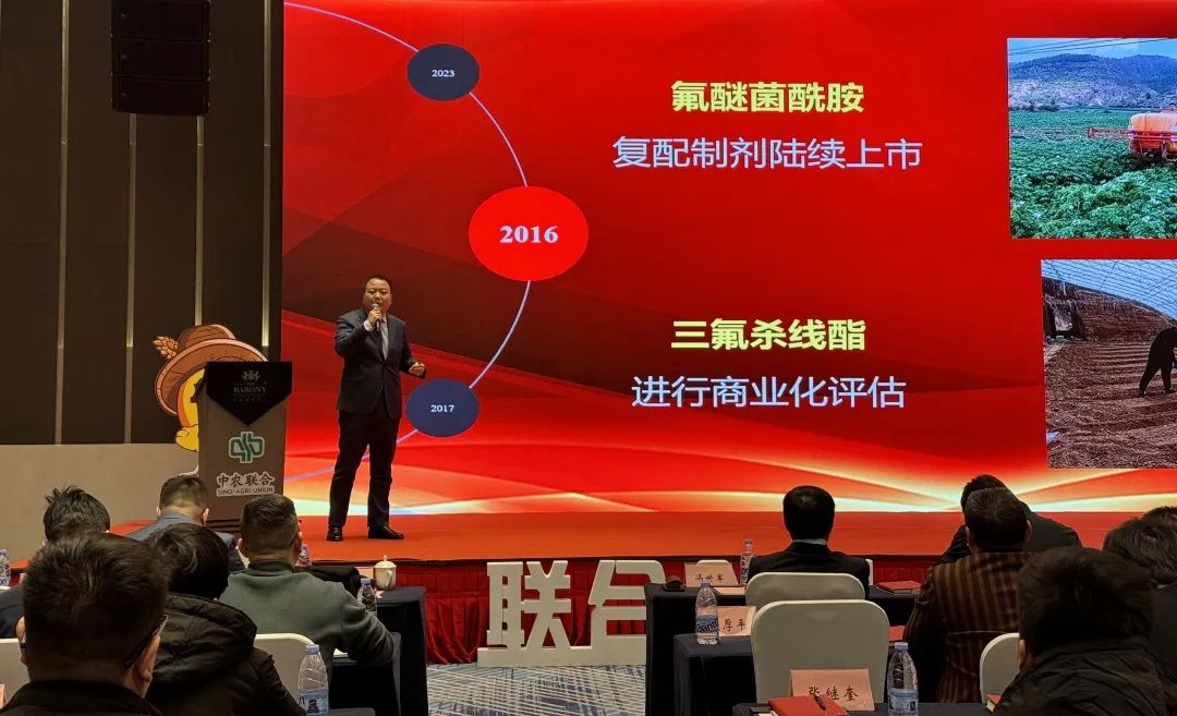 山东中农联合作物科学技术有限公司于2023年12月18日在山东济南,召开创新赋能,同心共赢——中农联合第十四届核心客户战略研讨会暨创制产品“三氟杀线酯”全球上市会,邀请全国各地的200余名合作伙伴和农资行业精英,共话行业之路的机遇和挑战。