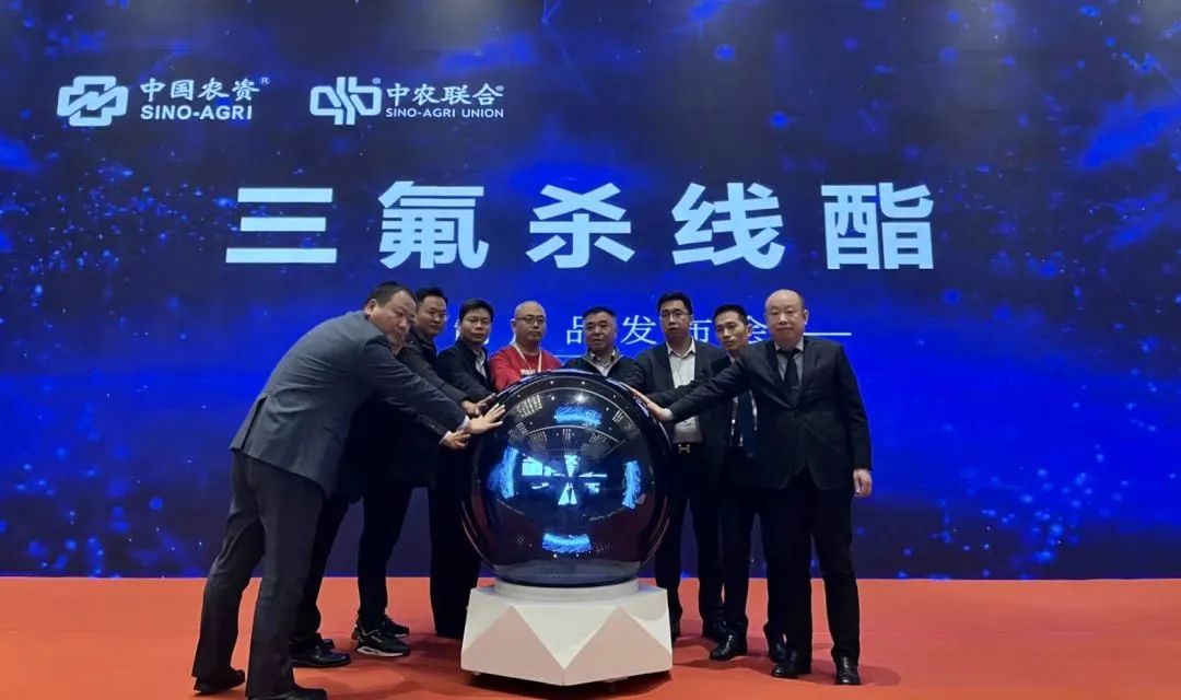 会上,中农联合携手全国200余名核心客户共同见证新一代创制产品——三氟杀线酯全球首发。