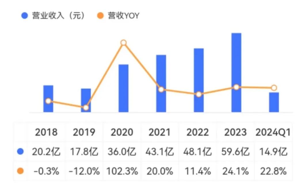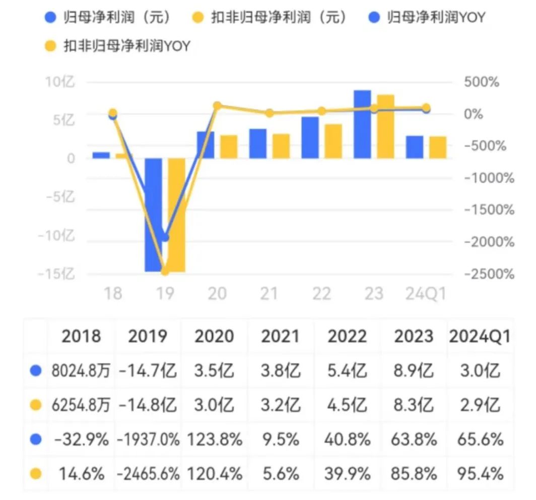 归母净利润的表现也大致类似,2023年为8.9亿元,相较2020年复合增长了36.2%。至于2019年的巨额亏损14.7亿元,我们后面再展开聊。