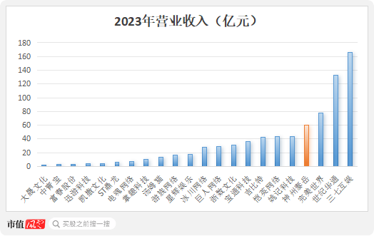 但从体量来看,2023年神州泰岳59.62亿的营收规模(其中游戏业务创收44.97亿),相较百亿级的世纪华通(002602.SZ)、三七互娱(002555.SZ)仍有不小的差距,排在A股游戏公司第四名。