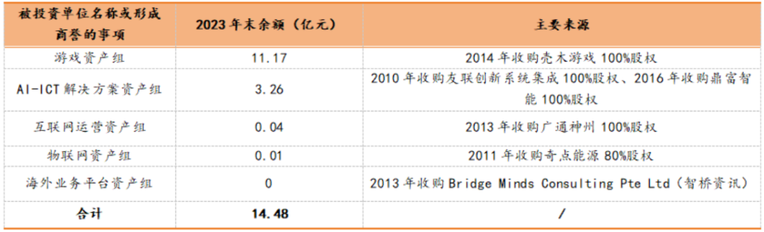 更可怕的是,这些业务中甚至也有不少是大手笔收购而来,截至2023年末仍留有商誉3.31亿元,算上游戏业务的商誉合计高达14.48亿元,占到公司总资产的20%以上,这些商誉也仍然存在不小的暴雷隐患。