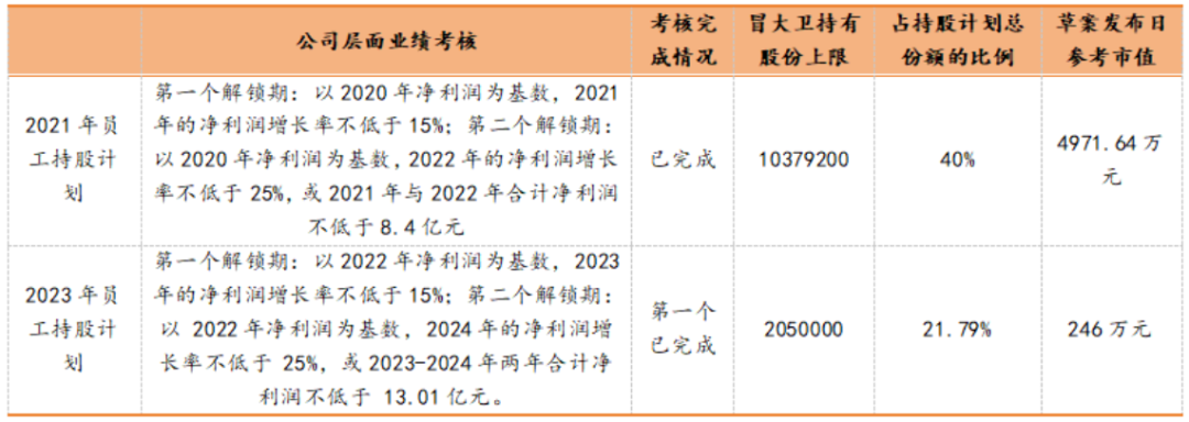 2023年员工持股计划又来一次,这次冒大卫揽获比例为21.79%,价格为2元/股,意味着只需掏41万元即可认购价值246万元的股票。
