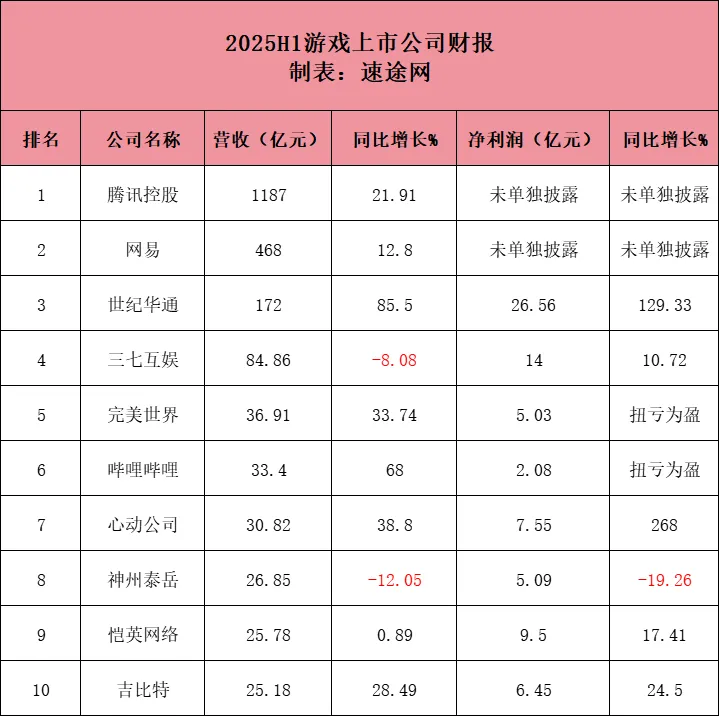 2025年8月下旬起,中国游戏上市公司陆续披露2025年半年报。在行业政策放宽、用户增长放缓、技术迭代加速的背景下,各大游戏上市公司业绩呈现显著分化——既有依托爆款或多元化布局实现增长的“黑马”,也有受困于单一IP依赖或转型阵痛的“掉队者”。速途网结合已发布的财报数据及行业动态,梳理了头部企业的业务能力与未来发展趋势,看看游戏行业在2025年上半年到底表现如何?又有哪些财报数据背后的经验值得我们参考借鉴?