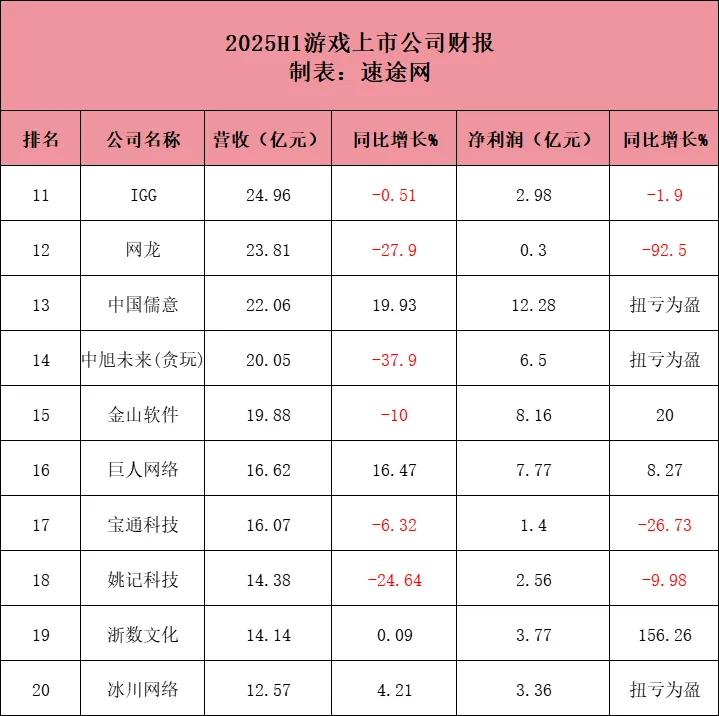 其中,神州泰岳、IGG、网龙、宝通科技、姚记科技、中手游、禅游科技、智明星通、汤姆猫、掌趣科技、指尖悦动、电魂网络、迅游科技等14家,则出现营收、利润双降。