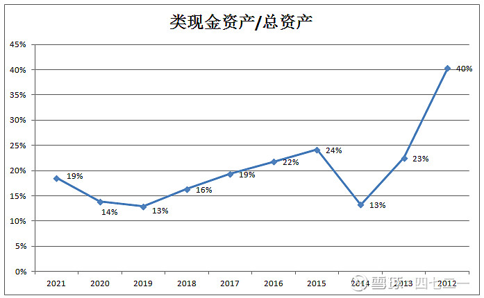 公司的资金是比较紧张的。一是,公司基本没有理财产品,如果资金宽裕,不会让几十亿资金在银行吃活期利息,迈瑞医疗现金类资产占比高,其中有40亿三年定期存款,理财也会有点收益的;二是,类现金资产占比较低,见下图。2021年,如果扣除可转债募集的未使用资金,占比只有13%。公司在2020年还发行了12亿中期债券,2023年需要归还的,2016、2017、2018这三年也发行了债券,由此可见,公司资金不宽裕。