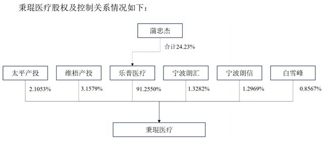 目前,在股权结构方面,乐普医疗直接持有秉琨医疗 91.26%的股权,为秉琨医疗的控股股东,蒲忠杰合计持有上市公司 24.23%股权,为上市公司实际控制人,亦为秉琨医疗实际控制人。