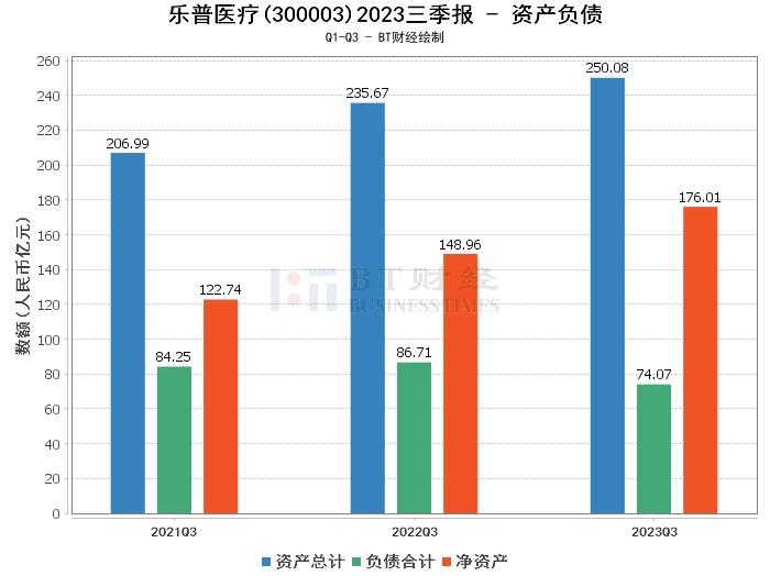 在资产负债方面,乐普医疗2023年三季度的总资产为250.08亿元,较上年度末的244.84亿元有所增长。负债总额为74.07亿元,相比上年度末的81.14亿元有所下降。公司的净资产为176.01亿元,较上年度末的163.7亿元有所增加。资产负债率为29.62%,较上年度末的33.14%有所降低,显示出公司负债管理的效果。