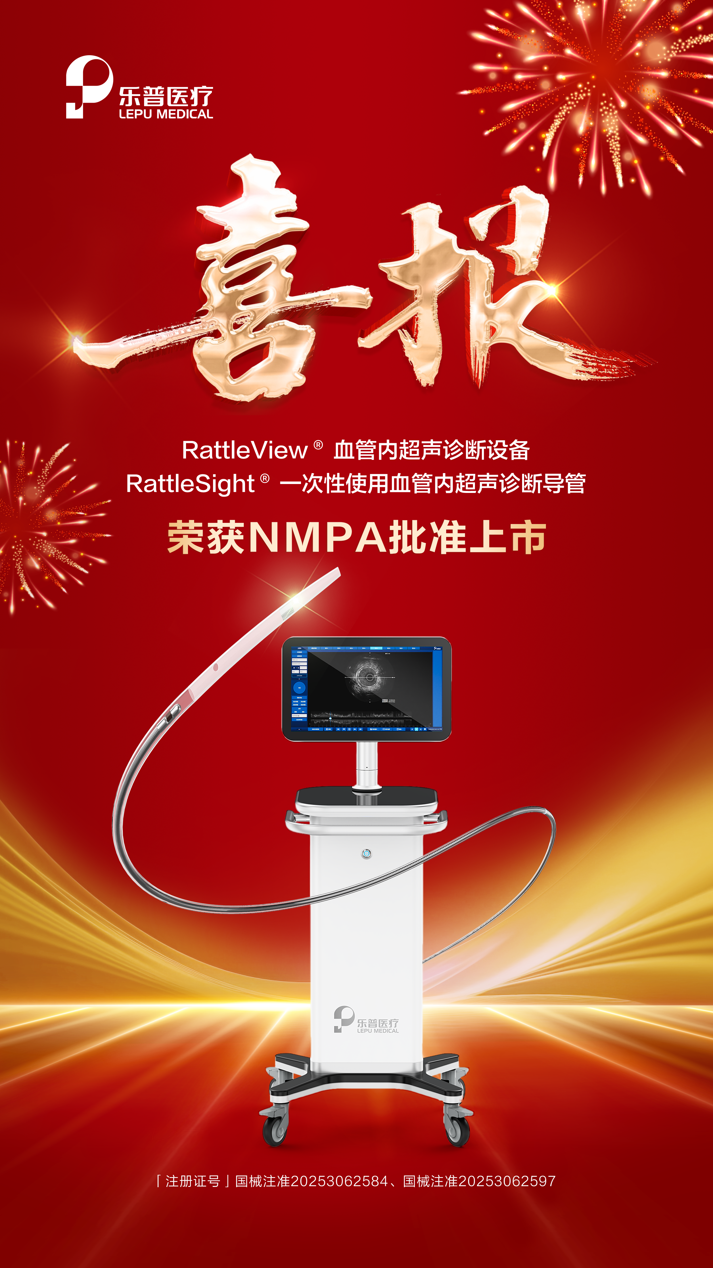 近日,经 国家药品监督管理局 (NMPA)批准,乐普(北京)医疗器械股份有限公司研发的“RattleView?血管内超声诊断设备”、“RattleSightTM一次性使用冠脉血管内超声诊断导管”成功取得中华人民共和国医疗器械注册证,注册证编号:国械注准20253062584、国械注准20253062597。