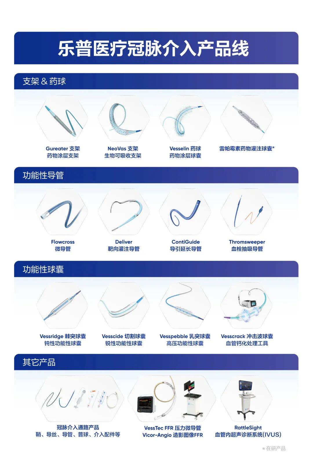 目前, 乐普医疗 拥有IVUS、FFR、切割球囊、冲击波球囊、生物可吸收支架等在内的全系列冠脉介入产品。未来,乐普还有众多冠脉CTO产品上市,敬请期待!