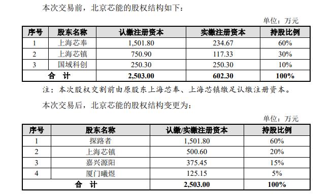 9月21日,探路者(300005.SZ)发布公告称,该公司拟与嘉兴源阳股权投资合伙企业(有限合伙)(以下简称嘉兴源阳)、厦门曦煜股权投资合伙企业(有限合伙)(以下简称厦门曦煜)共同收购北京芯能电子科技有限公司(以下简称北京芯能)80%股权。