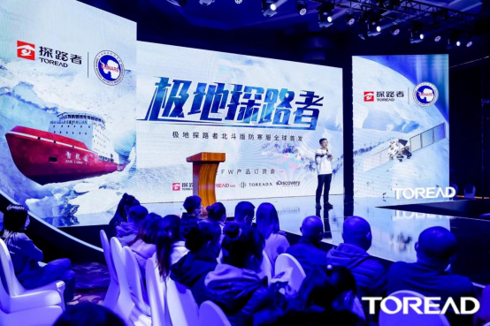 在发布会现场,探路者集团户外联席CEO陈旭向两位“极地探路者”——刘杨和卢武赠送了北斗版防寒服,希望在生活中探路者也能为两位考察队员遮风挡雨。身着北斗版防寒服的刘杨、卢武对产品的保暖性和高科技属性交口称赞。