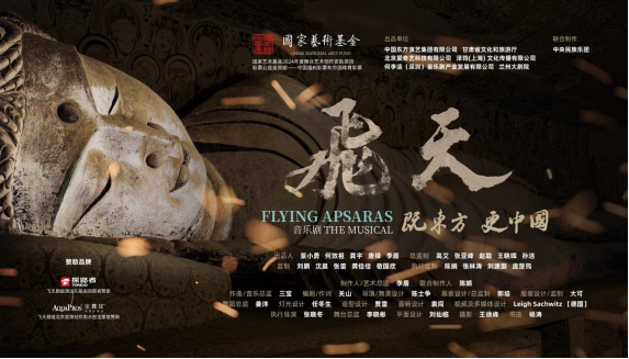 音乐剧《飞天》是中国东方演艺集团出品的音乐剧。今年是敦煌研究院建院80周年,也是敦煌研究院的第一任院长、敦煌文化的第一代守护人——常书鸿先生诞辰120周年。《飞天》以莫高窟壁画艺术为灵感,将以常书鸿为代表的一代代敦煌文化守护者的故事浓缩为“守护人”和“赶路人”两个典型形象,描绘了上世纪30年代敦煌大漠风沙中,文化守护者在恶劣、动荡的环境下竭力保护中华文明瑰宝的经历。悠扬的曲调、诗意的词句借由现代视听表达方式成为舞台艺术精品,为观众上演了一场穿越时空的文化之旅,该剧于四月在北京盛大首演,好评如潮。