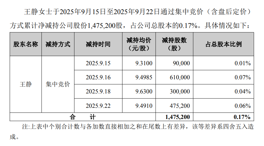 9 月 15 日 9:30,深交所一声竞价落锤,王静账户里 147.52 万股探路者股票易主。