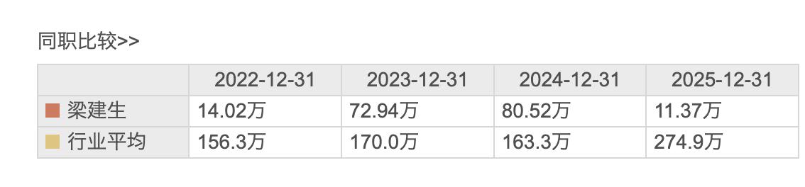 据瑞财社查阅,2025年,莱美药业董事长梁建生薪酬为11.37万元,与2024年薪酬80.52万元相比下滑85.88%。