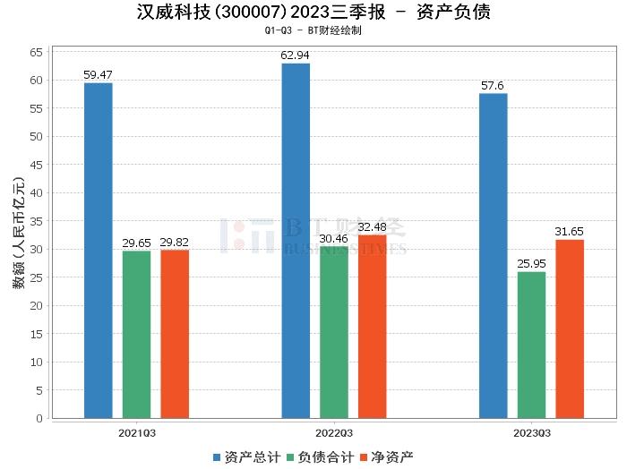 在资产负债方面,截至2023年第三季度末,汉威科技的总资产为57.6亿元,相比上年度末的60.9亿元有所减少。负债合计为25.95亿元,较上年度末的29.71亿元有所下降。公司的净资产为31.65亿元,略高于上年度末的31.19亿元。资产负债率为45.05%,较上年度末的48.78%有所降低。