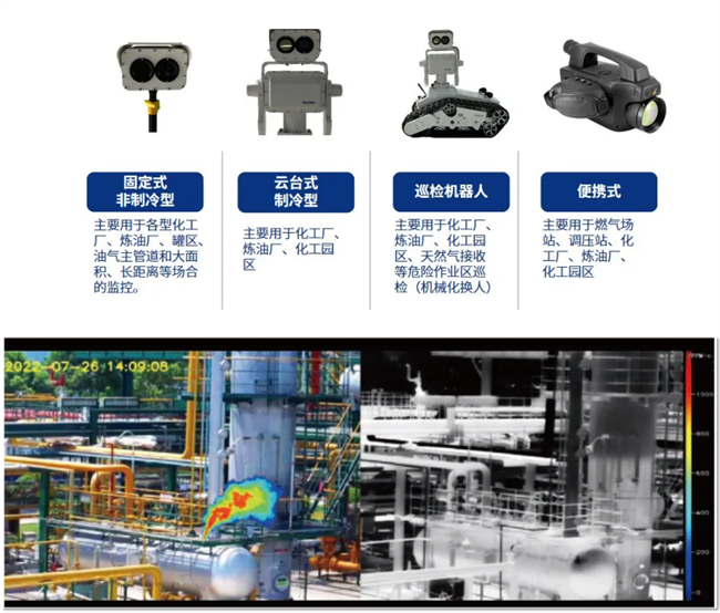 气云成像系统是利用红外光谱成像技术,结合独创的算法以及人工智能技术的在线立体式油气泄漏监测系统,包含固定式非制冷型、云台式制冷型、巡检机器人、便携式等系列产品,可迅速发现微小泄漏,精准定位泄漏源,测量泄漏气体体积及浓度,实时显示泄漏气体羽流轨迹,并进行智能报警。