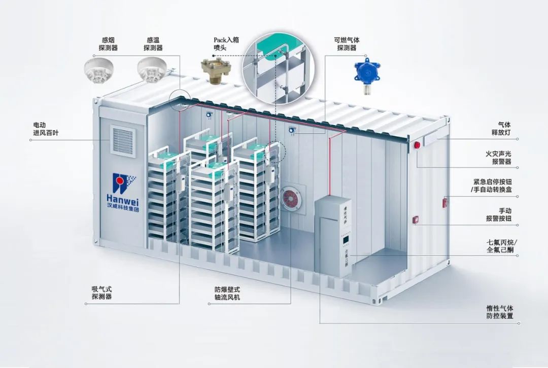 通过PACK、簇、舱级早期精准探测,综合惰性气体主动惰化、全氟己酮、细水雾等抑制手段,构建立体式主被动防护体系,将火灾扼杀在萌芽状态。