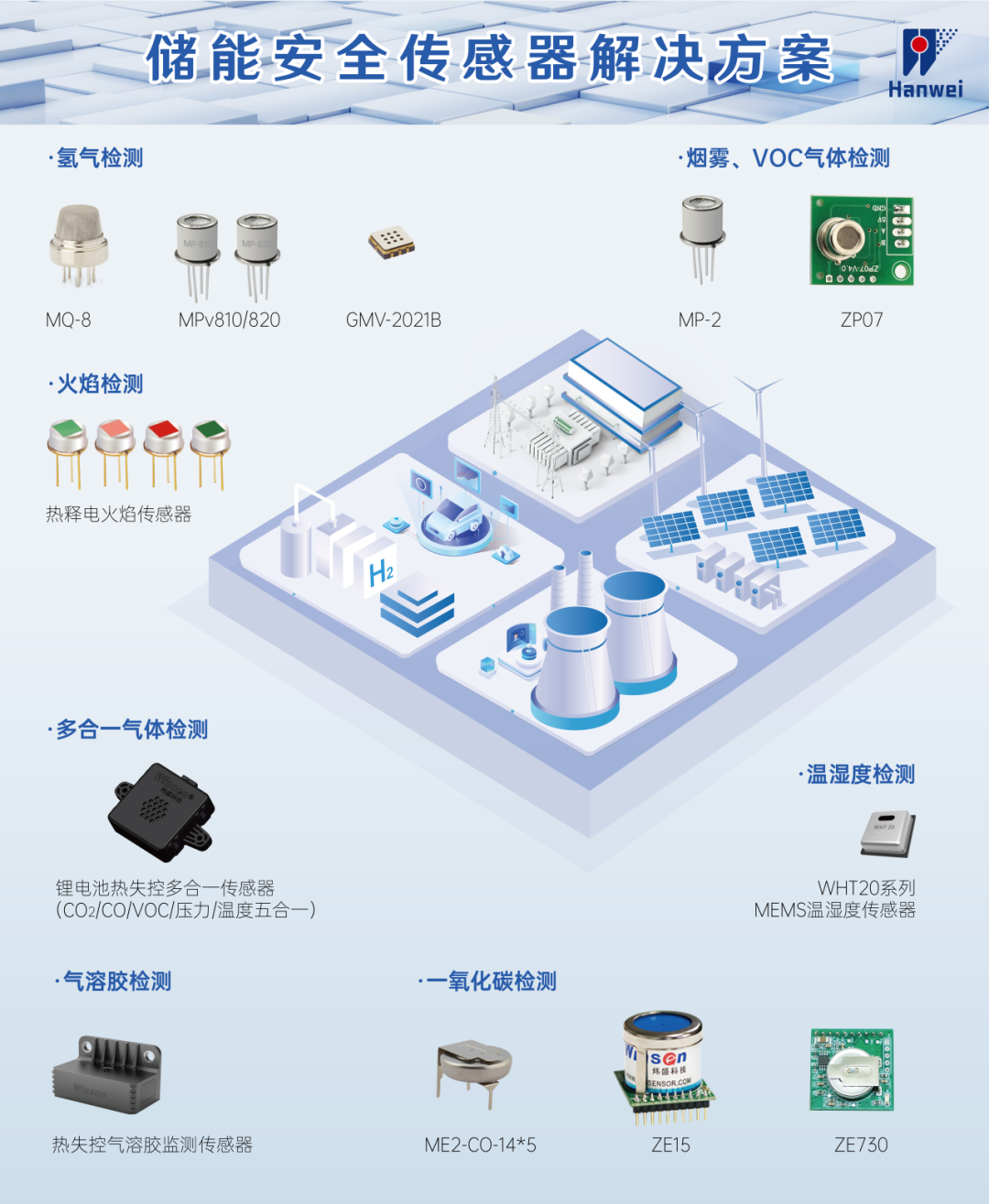 汉威科技集团一站式储能安全解决方案,从传感器到复合火灾探测器,再到解决方案,自主研发设计,核心工艺自主可控,可以为多类型锂电池储能电站提供PACK级、簇级、舱级安全解决方案,综合优势领先行业。