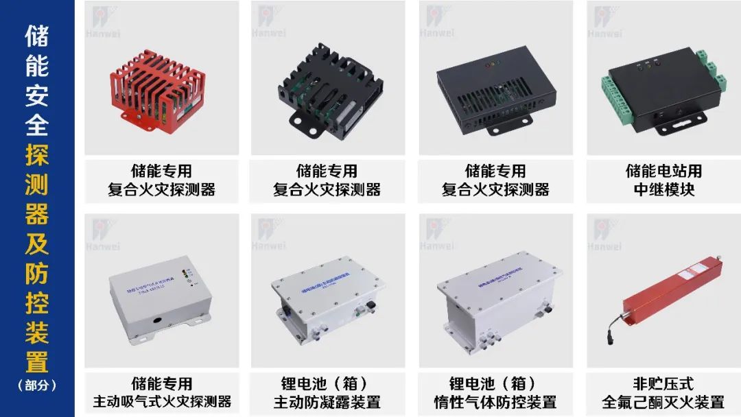 在探测器及防控装置方面,依托完善的智能仪器仪表技术平台,自主研发了多款PACK级储能专用的复合火灾探测器、簇级主动吸气式火灾探测器、舱级火灾探测器,以及惰性气体防控装置、锂电池(箱)主动防凝露装置等消防控制相关设备。