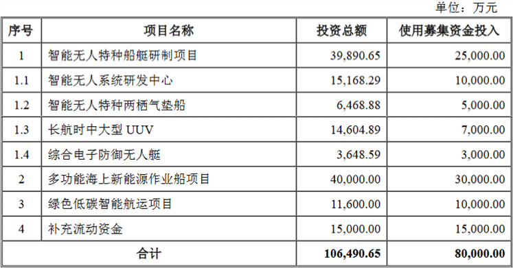 天海防务于9月23日晚间披露2022年度向特定对象发行股票预案。该公司本次向特定对象发行募集资金总额不超过人民币80,000.00万元(含本数),扣除发行费用后,募集资金净额将分别用于智能无人特种船艇研制项目、多功能海上新能源作业船项目、绿色低碳智能航运项目和补充流动资金。