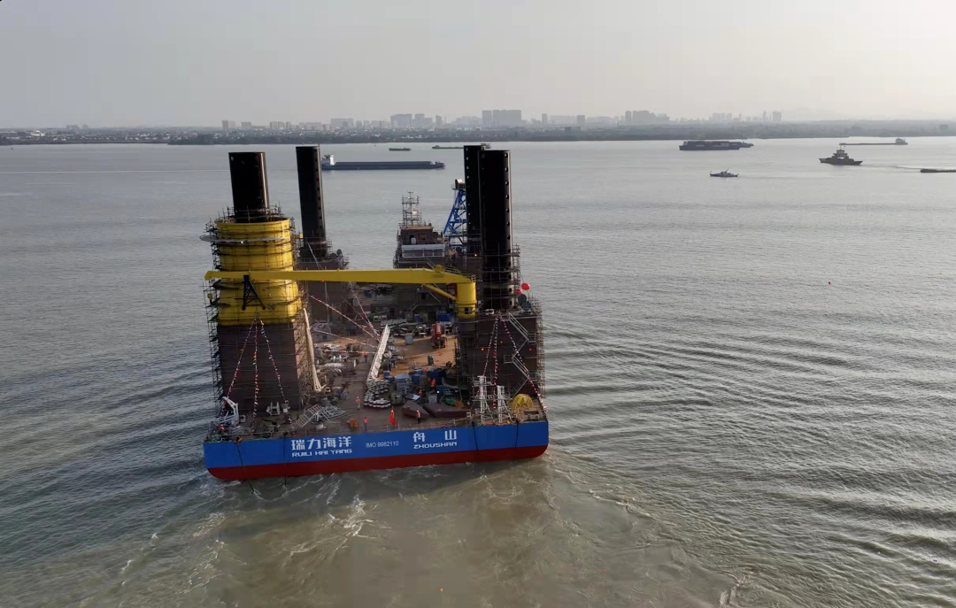 浙江瑞力海洋1100吨风电安装船是为满足深远海风电场建设而开发的一型高效率自航自升式风电安装船。