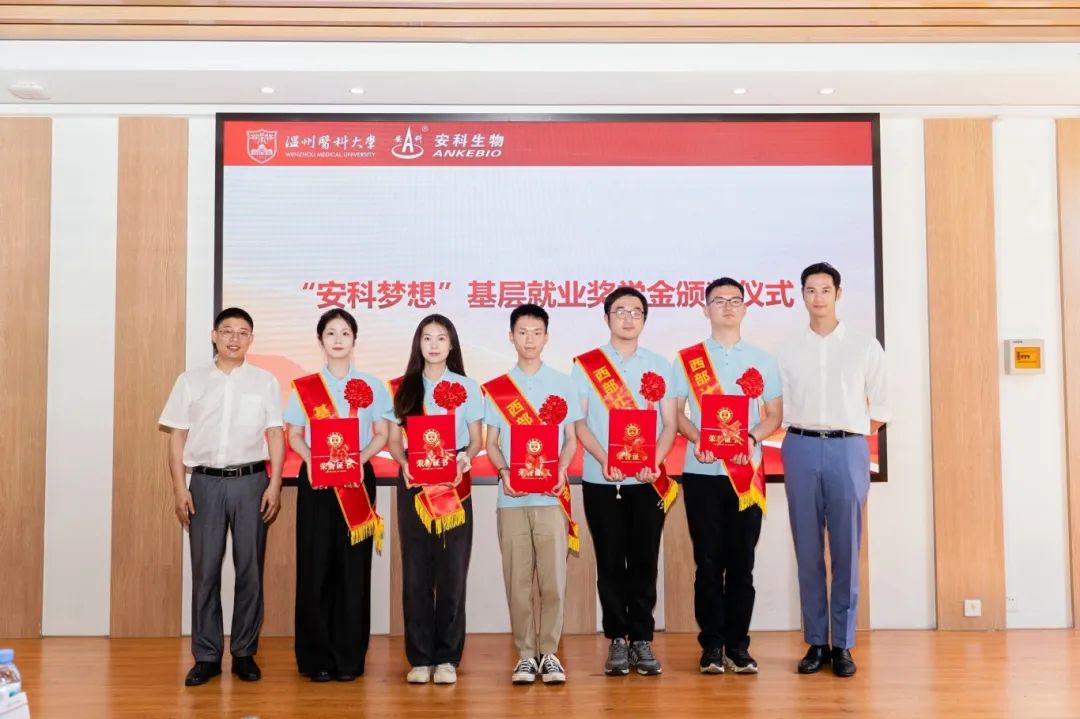 “我志愿投身基层建设,坚定理想,牢记使命,践行奉献精神,传播先进文化……”在铿锵有力的誓言中,温州医科大学20名赴西部志愿服务和基层就业的毕业生正式告别母校,即将踏上逐梦远航的崭新征途。2024年7月4日下午,温州医科大学“安科梦想”基层就业奖学金颁奖仪式暨研究生支教团、西部计划志愿者、基层就业毕业生座谈会在温医大学生活动中心向阳工坊举行。温州医科大学校党委副书记章成斌、安徽安科生物工程(集团)股份有限公司副总裁周大为出席会议。