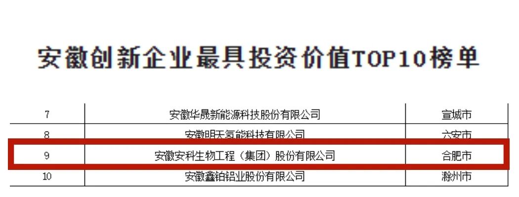 此次入选安徽创新企业TOP100及最具投资价值榜单,充分体现了行业和社会各界对安科生物创新战略与实践的高度认可。未来,安科生物将继续秉持创新驱动发展的理念,进一步加大核心技术攻关,加速新质生产力的培育与转化,为推动安徽省乃至全国生物医药产业的高质量发展贡献更多力量。