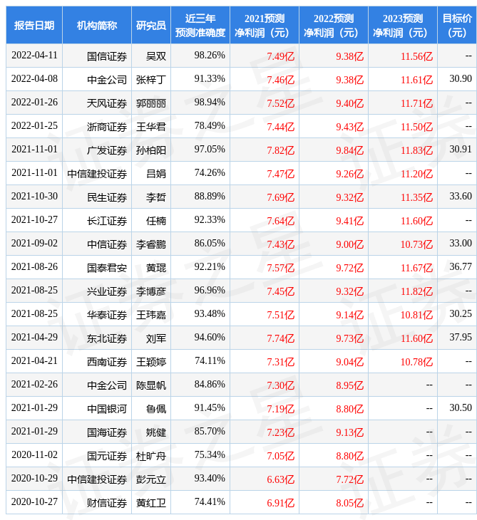 证券之星数据中心根据近三年发布的研报数据计算,天风证券郭丽丽研究员团队对该股研究较为深入,近三年预测准确度均值高达98.94%,其预测2021年度归属净利润为盈利7.52亿,根据现价换算的预测PE为45.69。