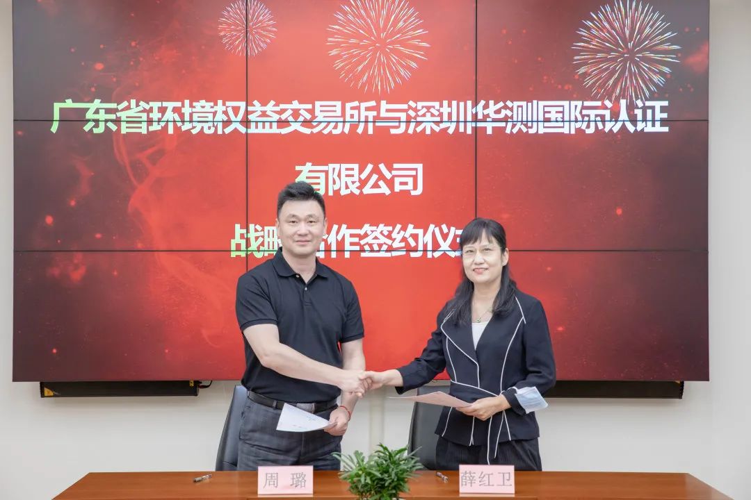 2022年5月24日,华测检测认证集团股份有限公司旗下子公司深圳华测国际认证有限公司(简称“CTI华测认证”)与广东省环境权益交易所有限公司(简称“广东环交所”)在深圳华测大楼举行战略合作协议签约仪式暨“双碳工作”交流会,CTI华测检测集团副总裁周璐先生,华南区总监王鸿娟女士与广东环交所执行董事、总经理薛红卫女士、副总经理余洋先生一行人共同出席此次签约仪式。