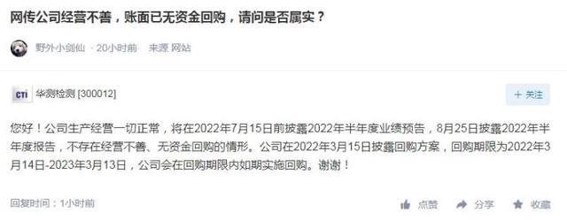 “网传公司经营不善,账面已无资金回购,请问是否属实?”