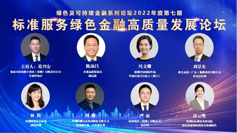“标准服务绿色金融高质量发展论坛”由深圳市地方金融监督管理局、深圳市市场监督管理局、中国人民银行深圳市中心支行作为指导单位,深圳市绿色金融协会主办,上海浦东发展银行股份有限公司深圳分行协办,粤港澳大湾区(深港)计量检测认证发展促进联盟为支持单位。