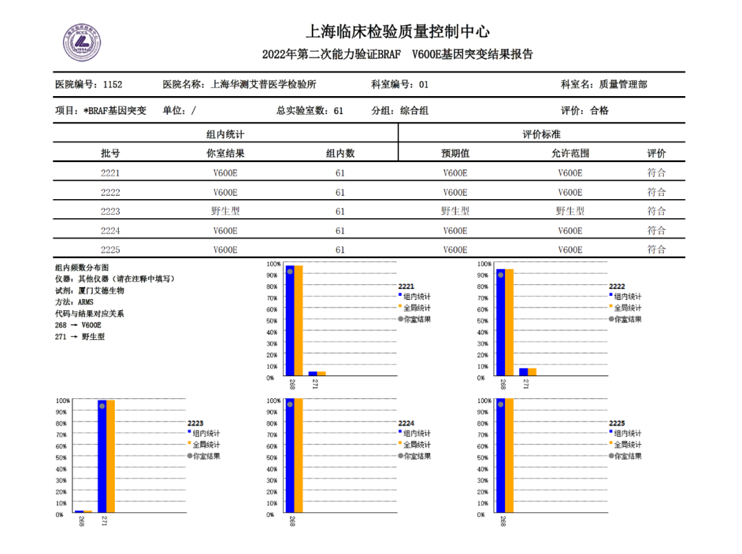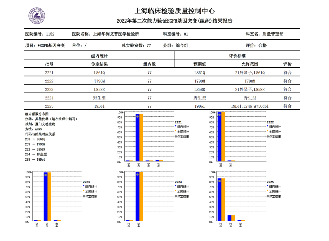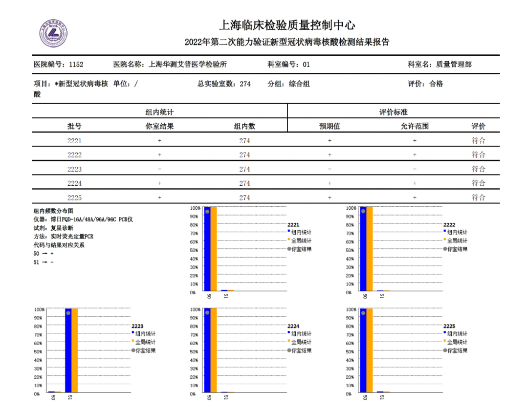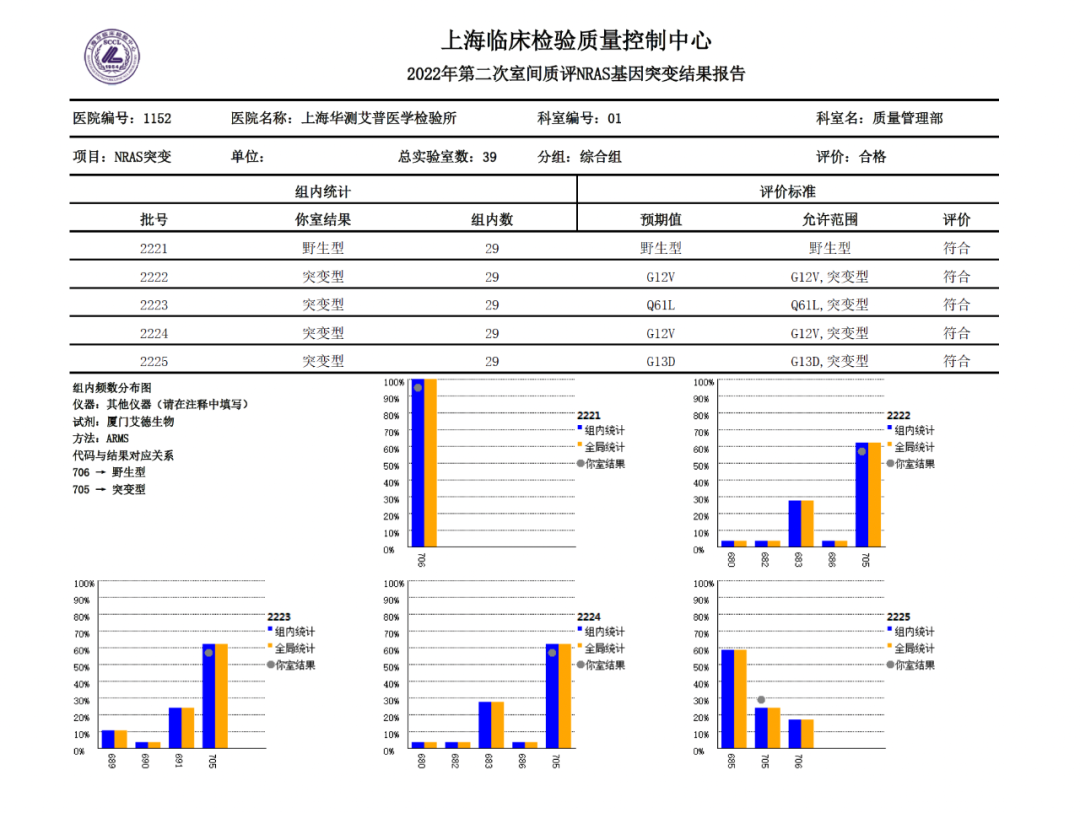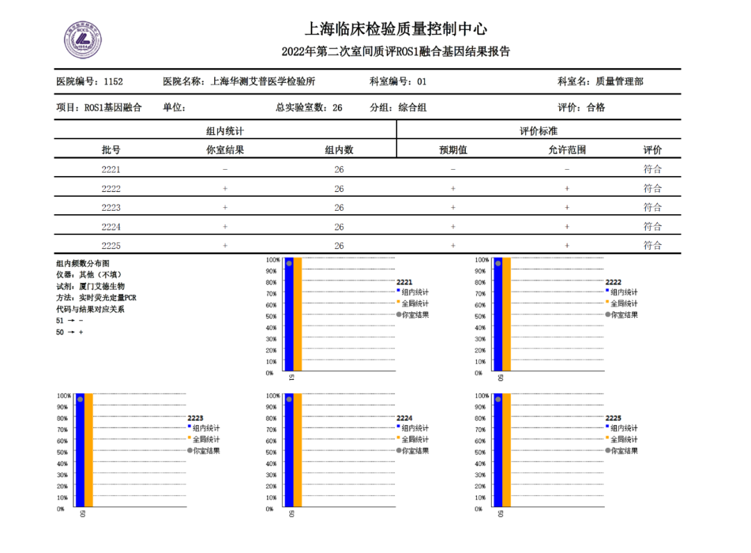 近日,上海市临床检验中心公布了2022年第二次室间质评结果,华测检测认证集团股份有限公司旗下——华测艾普医学实验室满分通过MSI、EGFR、ALK、KRAS、NRAS、ROS1、肿瘤标志物、同型半胱氨酸、脂类和流式细胞术淋巴细胞亚群等100余个项目!本次室间质评的优秀成绩,是华测艾普医学技术实力和高质量水平的充分体现,也充分展示了华测艾普医学在医学检测领域的先进技术、规范管理、严格质控、可靠结果!