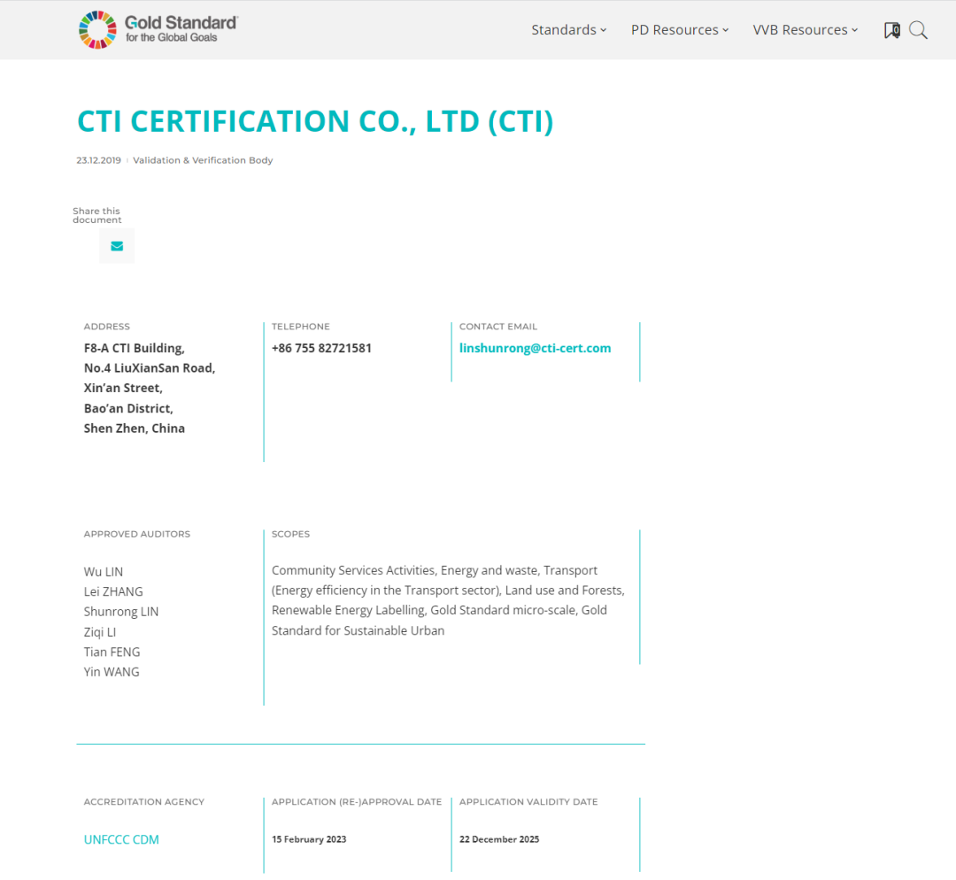 近日,华测检测认证集团股份有限公司(简称CTI华测检测)旗下全资子公司——华测认证有限公司(简称CTI华测认证),顺利通过了黄金标准(Gold Standard, GS)审定核查机构(VVB)的资质再认可评审,并获批技术范围“土地使用和森林”的新资质,从而获得GS全部减排项目类型的审定及核查资质,同时成为国内首家GS全领域温室气体减排项目审定及核查的第三方机构。